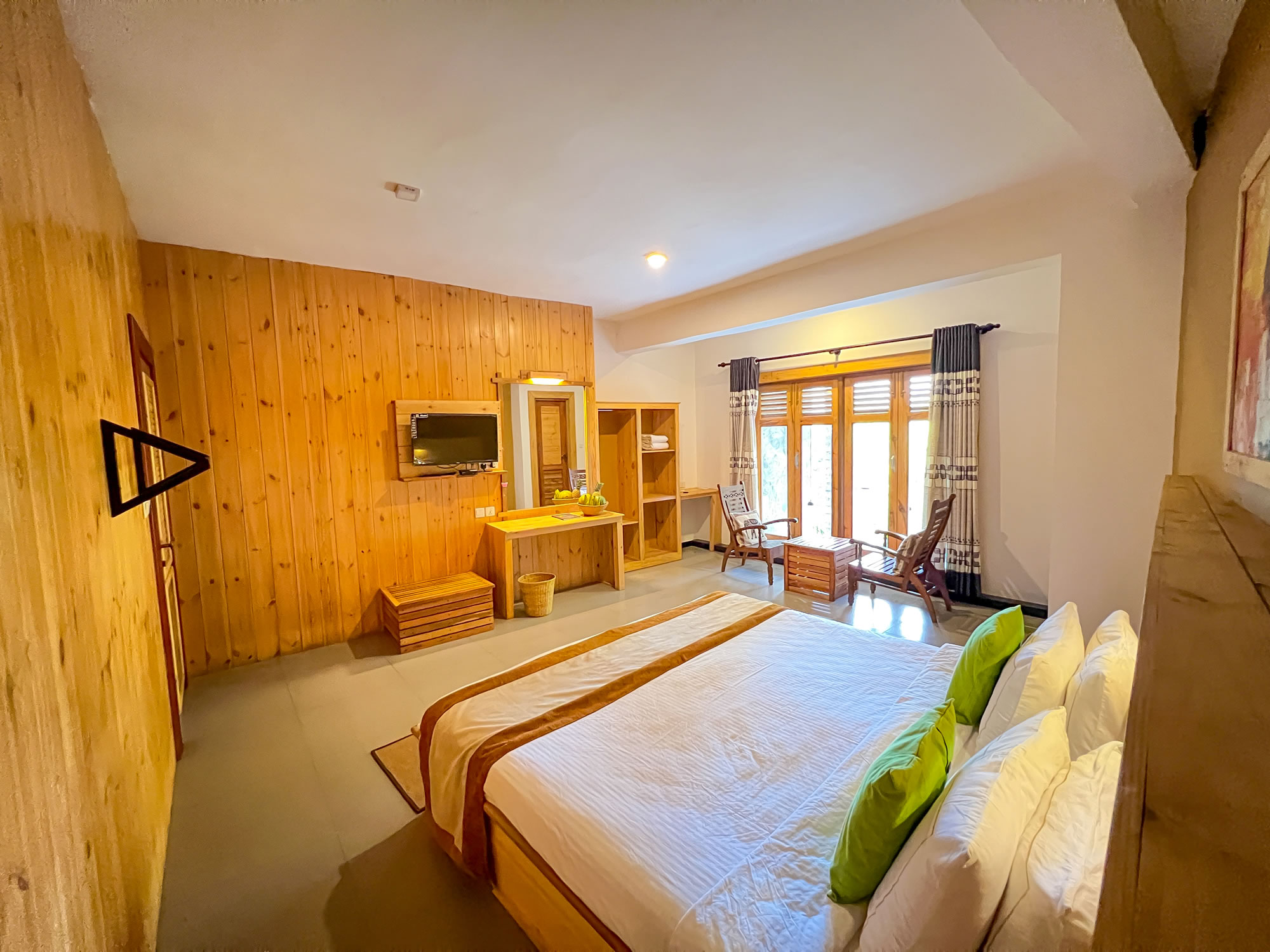 Superior rooms on ground floor with garden view and mountain view. Each consists of comfortable, extra lage double beds with spring mattress. Modern styled bathrooms with hot water and  all modern amenities included such as flat screen TV. Room size is 17 square meters.